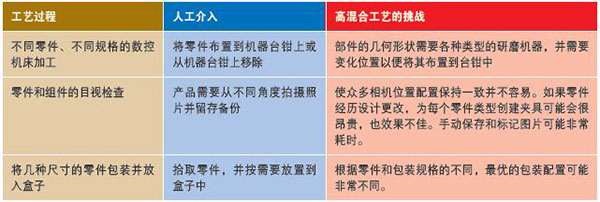 高混合生產(chǎn)環(huán)境可能難以快速改進。理想的改進將涉及多條生產(chǎn)線,但適應(yīng)多個工藝所需的投資可能非常大,足以顯著降低投資回報率。傳統(tǒng)的自動化無疑是大批量或快速循環(huán)生產(chǎn)更有效的解決方案。